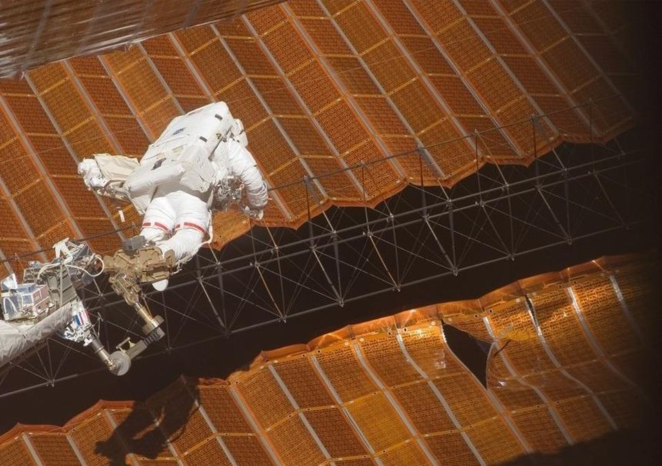 Shuttle flight STS-120, which Pam Melroy commanded, is most famous for helping to repair a torn solar array on the International Space Station. Pictured here is NASA astronaut Scott Parazynski.NASA